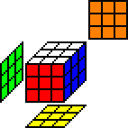 Analoges gilt für die anderen Mitteldrehungen.Zu guter letzt ein paar Definitionen: Mittelstück: Ein Mittelstück ist die Mittlere Fläche einer Seite. Es hat nur 1 Farbe. Da sie Mittelstücke fest mit dem Skelett verbunden sind ändert sich die raltive Lage der Mittelstücke zueinander nicht. Oder in Bild: Das Teil: ![]() Kantenstück: Ein Kantenstück hat genau zwei Farben und sitzt an einem der 12 Kanten des Würfels. Im Würfel gibt es deswegen auch 12 stück davon. Oder in Bild: Das Teil: ![]() Eckstück: Ein Eckstück ist drei Farbig und sitzt an einem der 8 Ecken des Würfels. Deswegen gibt es auch 8 Stück von denen. Oder in Bild: Das Teil: ![]() |